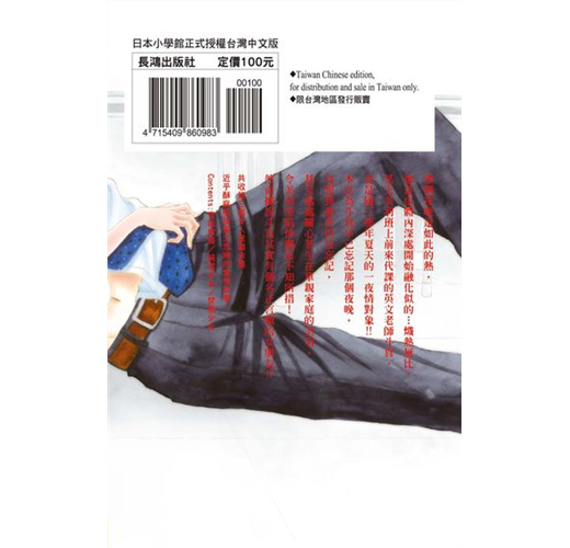 那個夜晚是如此的熱,像是由體內深處開始融化似的…熾熱無比。某天美羽班上前來代課的英文老師斗真,竟是國三那年夏天的一夜情對象!!本以為斗真早已忘記那個夜晚,沒想到他非但沒忘記,甚至處處關心著生在單親家庭的美羽,令美羽深陷情網而不知所措!然而據說斗真其實有個名正言順的女朋友!?共收錄三篇令人意猶未盡,近乎酥麻般甜蜜又危險的愛情故事。