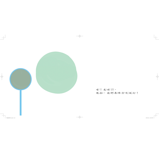 這本書是一場吹泡泡的遊戲。對著書上的泡泡棒吹氣,泡泡出現了,接下來每頁都有不同的指令,泡泡也產生各種變化…你現在心裡可能會疑惑:這本書到底要做什麼呢?