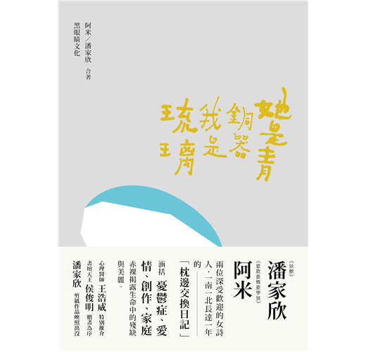 《她是青銅器我是琉璃》乃兩位傑出的台灣女詩人:台北的阿米與台南的潘家欣,經過為期一年的詩歌通信。她們通信以詩歌的形式對話,開闢另一種書寫的可能。對話涵括憂鬱症、愛情、創作、家庭,全是掏出自己的一種寫法,誠實揭露生命中的殘缺與美麗。兩位詩人是彼此的密友,創作上惺惺相惜,但是性格迥然不同。潘家欣是青銅器,在火焰捶打中復活;阿米是琉璃,是通過黑暗考驗的易碎物品。