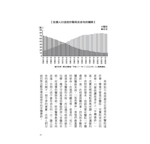 →在「死=失敗」的醫院裡,應該不可能有醫師想到要為患者家屬預演痛失親人的悲傷,只有那些將「死亡」視為自然法則的診所醫師,才能讓家屬們增添些許對悲傷的免疫力。