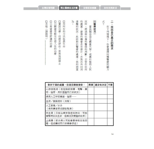 讀完之後,我也請老公讀這本書,並告訴他我希望面臨的臨終方式。