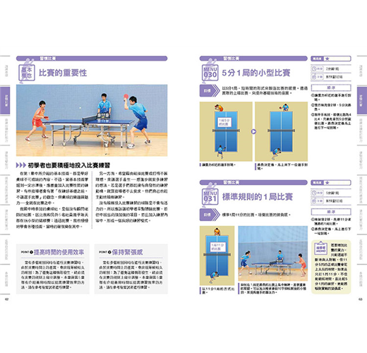 ● 技巧大進擊!收錄200則桌球基本打法,等級由簡而難,只要一步步努力練習,就能得到好成績!