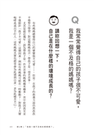 (2)以問答的方式,蒐集了媽媽們在育兒當中所遭遇到的煩惱與解答。例如責罵與稱讚的要