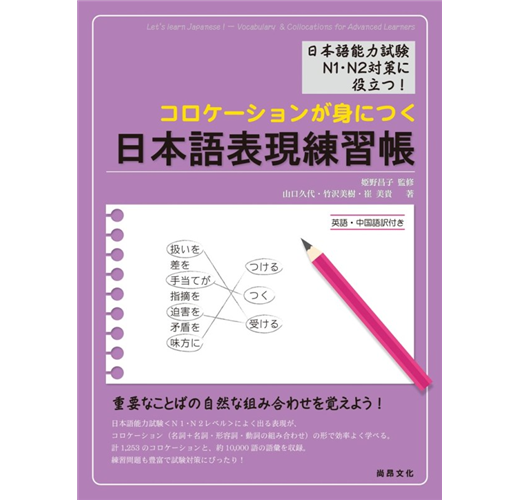 「コロケーション」有各式各樣的形態,例如「名詞+名詞」、「名詞+形容詞」、「名詞+動詞」……等。這種字詞和字詞之間的關聯性猶如慣用語,單就文法或者單字的意思來解讀無法闡明整段文字的涵義,也因此,即使明白了各個單詞的意義,若是不能善用「コロケーション」,使用出來的日文並不夠自然通順。本教材就是以此為考量所編纂,期望讀者能如同「道地日文般自然的表達」般運用自如。