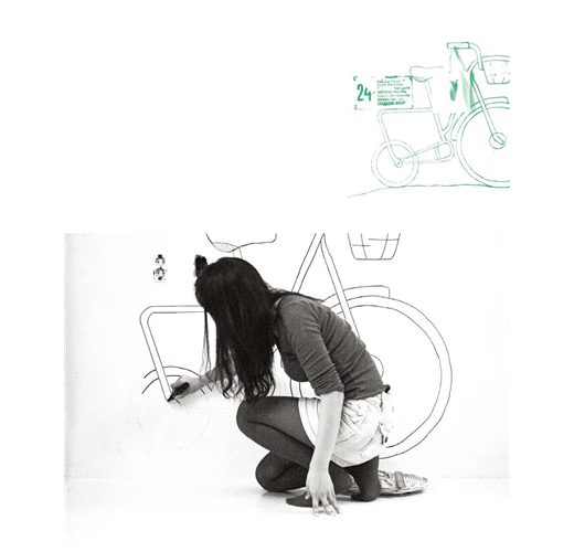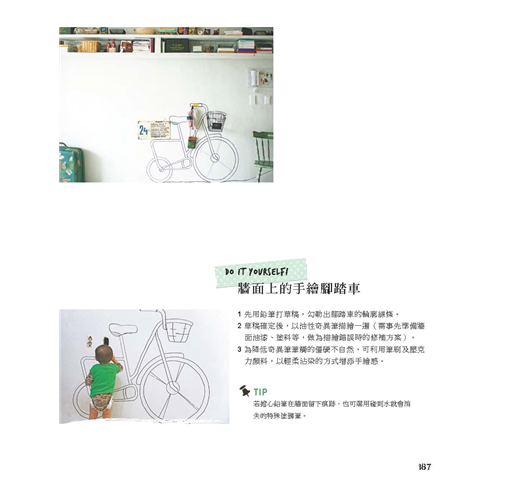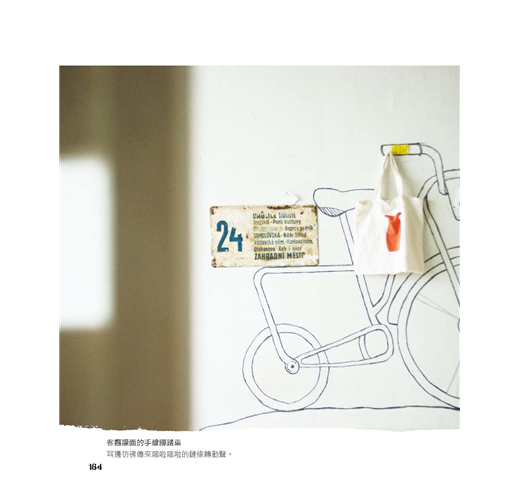 在空白的牆上創作,玩心十足的腳踏車圖案搭配上收納效果,讓室內空間充滿趣味。