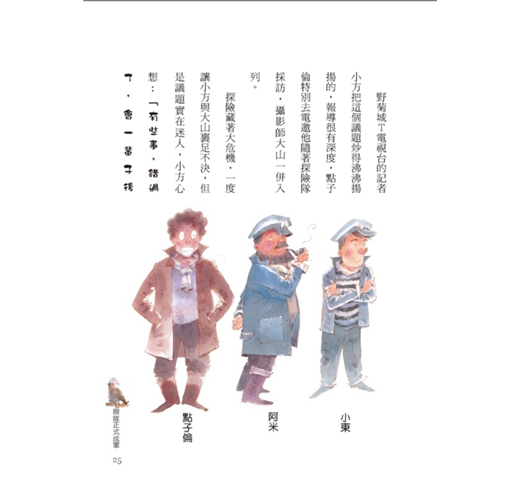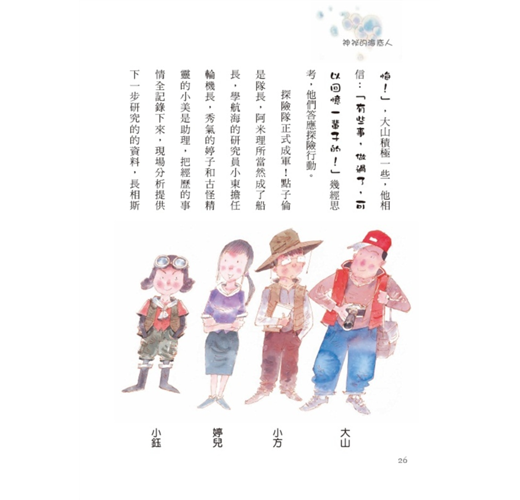 主角科學家點子倫富有行動力、膽大心細,不僅帶讀者走進夢幻般的湖泊森林、深入氣泡人的水晶宮,又像動作片大明星般,摔落懸崖、密探鐘乳石洞、縱身大瀑布,孩子們很容易將自己投射在點子倫身上,跟著他大冒險,也體驗他的震撼與省思。神祕的氣泡人的造型更是一絕,綠色海藻的頭髮,可以行光合作用,長短伸縮自如的鼻子便於呼吸水面的空氣。先進的科技設定、加上自然界的進化理論,讓氣泡人的外型及生活環境的描述,說服力十足。
