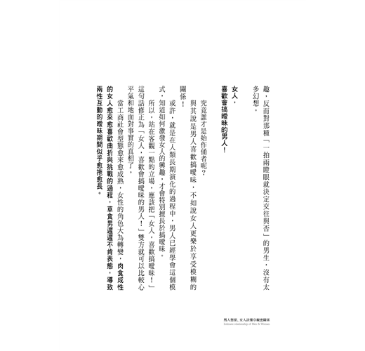 或許,就是在人類長期演化的過程中,男人已經學會這個模式,知道如何激發女人的興趣,才會特別擅長於搞曖昧。