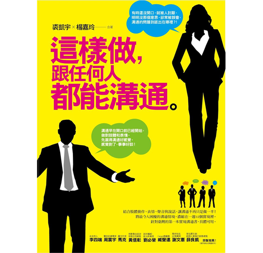 所以我很高興能推薦這本書,給所有想學好溝通,想掌握一些讀心術,但卻苦無門路的朋友。這本書實用、可操作、而且容易懂,一定可以給你很多幫助。學會這些肢體語言、表情與聲調之後,再進一步學談判,也將更能進入狀況,爭取到我們所想要的目標。加油!