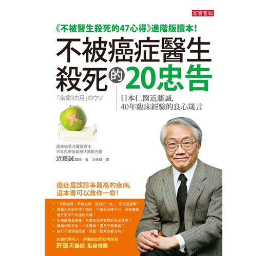 我是被醫生宣告餘命6個月的癌症患者。近藤醫師的書裡,寫的都是我以及朋友們曾經經歷過的事實。如果你被醫生判定得了癌症,不,即使你現在沒有得,今後無論是你自己或家人,都有可能被醫師宣告得了癌症,為了今後的準備,請你一定要讀這本書。