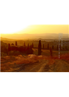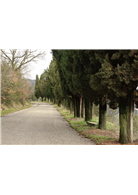 這條鋪著灰白石子的蜿蜒山樹兩旁種植著整齊漂亮的絲柏樹。午后斜陽照射穿著,便在滾燙的石子上形成一條條光影,難怪芙蘭西斯.梅耶思的《美麗托斯卡尼》一書,會以:「有絲柏樹影曳過被太陽曬得滾燙的路面,真是福氣」這個句子開始。