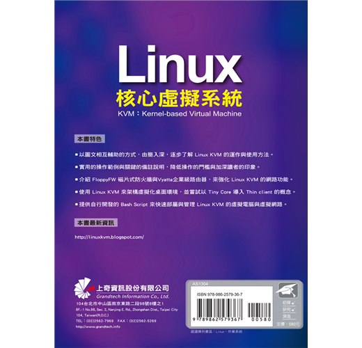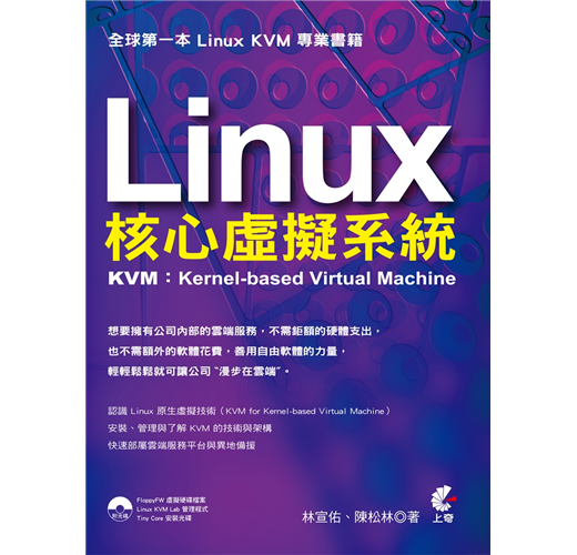 全球第一本 Linux KVM 專業書籍 想要擁有公司內部的雲端服務,不需鉅額的硬體支出,也不需額外的軟體花費,善用自由軟體的力量,輕輕鬆鬆就可讓公司〝漫步在雲端〞。
