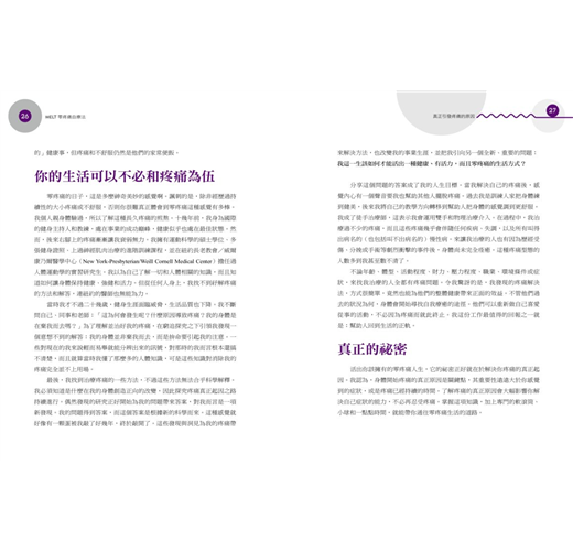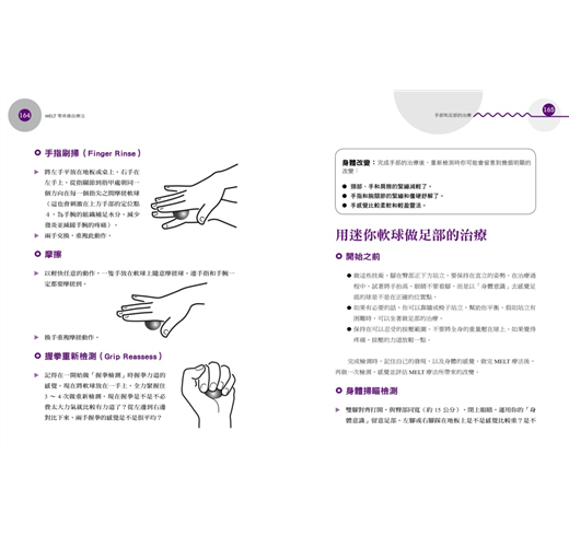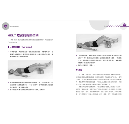 痛則不通,通則不痛。希茲曼認為會痛的地方就是「壓力卡住」了,因此她提出這套方法就是利用軟滾筒進行「MELT動作」讓身體各部的水份都能暢通無阻。MELT與中醫經絡穴道間的關聯性讓我興味昂然,尤其是作者希茲曼透過西方的理性論調,把千百年來累積下來那種經驗式的中醫知識轉化為我們可以理解的語言,甚至可以獨立操作自療。