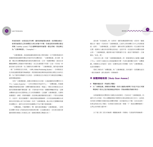 MELT與中醫經絡穴道間的關聯性讓我興味昂然,尤其是作者透過西方的理性論調,把千百年來累積下來那種經驗式的中醫知識轉化為我們可以理解的語言,甚至可以獨立操作自療。
