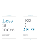 出生於19世紀建築大師密斯‧凡德羅,與出生於20世紀、1991年普立茲建築獎得主文丘里(Robert Venturi )同桌對談!一個說:「少即是多」另一個卻說: 「少即是無趣」。
