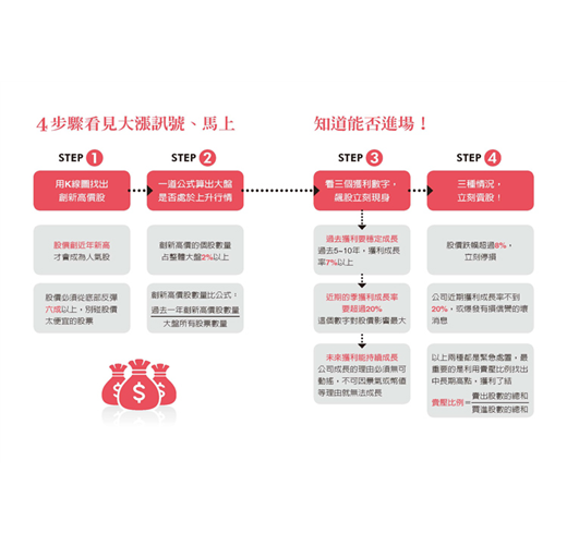 想「逮到底部」,下場通常是套牢。林則行專門挑「股價創新高」。這代表企業體質改變、出現獲利、開始賺錢,這就是你進場的時間。