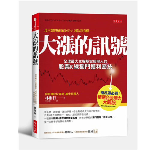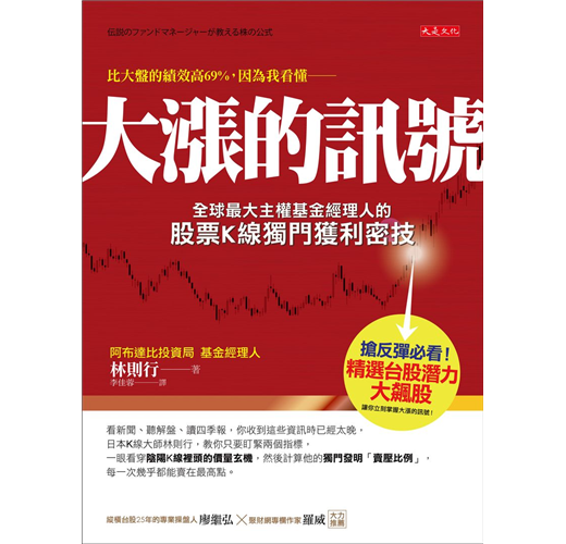 投資股票的人,不管你是從基本面或技術面選股,無不希望能找到或建立一個簡單又有效的選股獲利公式;現在投資人有福了,大是文化出版了全球最大主權基金「阿布達比投資局」傳奇基金經理人林則行先生寫的《大漲的訊號》這本書,他綜合了羅傑斯等投資大師的投資技巧及自身投資成功的經驗,歸納出一個簡單有效的致勝公式,無私地分享給讀者,相信看完本書,大家都會覺得值回票價。