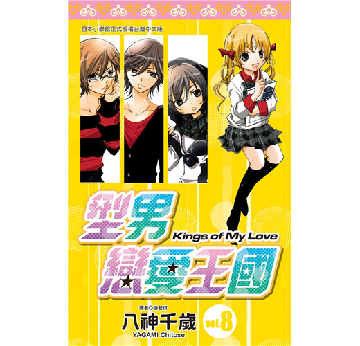 八神千歲老師是《甜芯》月刊日本連載排名NO.1的超人氣作家,擁有廣大的讀者群,單行本也都相當暢銷。在甜芯館已出過《我的白金公主》全3冊、《我的雙聖王子(全)》、《牛奶糖之吻》全4冊、《戀愛狂熱》1~4集、《阿飄小鎮三丁目》全2冊和《型男9人☆棒球部(全)》,最新作品《型男戀愛王國》現於《甜芯》月刊持續連載中!單行本第8集即將於2014年1月出版。