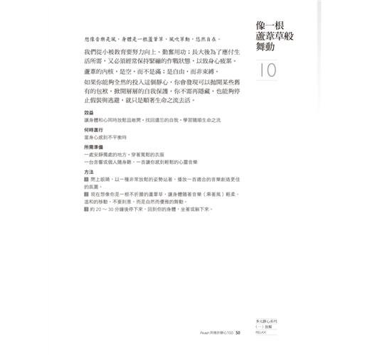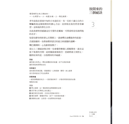 獻給你100種放鬆、安定、淨化、專注等多元的靜心方法,