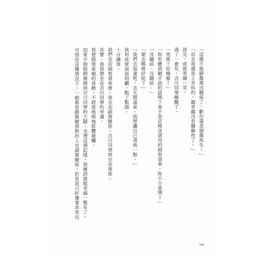我們坐在箱型貨車裡。我坐在副駕駛座,吉川同學則坐在後座。