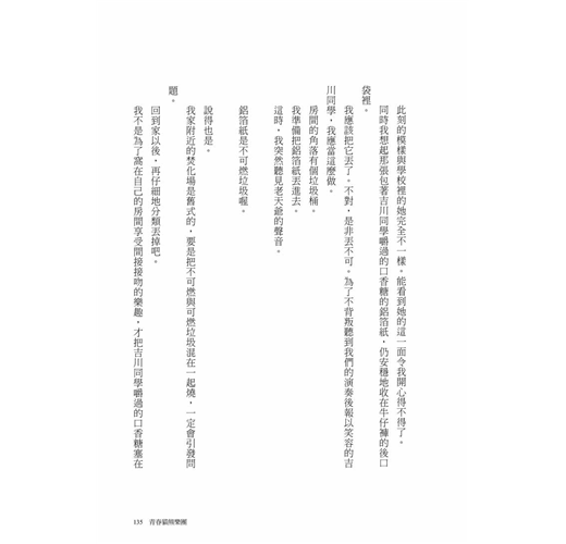 突然間,我不知道哪根筋不對了,竟然把吉川同學的口香糖紙塞進牛仔褲的口袋裡。
