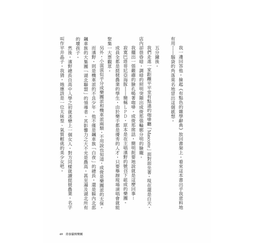 舞台在滋賀‧琵琶湖。一個老實木訥,心裡有著心儀的她,稍微有點眼高手低的高三男孩,某次機緣下受邀加入了四人樂團。正值十七歲的青春,有爭吵,有胡搞瞎搞,有淡淡的激情,有對將來的迷惘,回想起來,那段渴望戀愛又充滿活力的美好日子,才是最耀眼的──這是一篇酸中帶甜的青春爆笑物語,你也可以走進書中世界,與當年的自己再會。