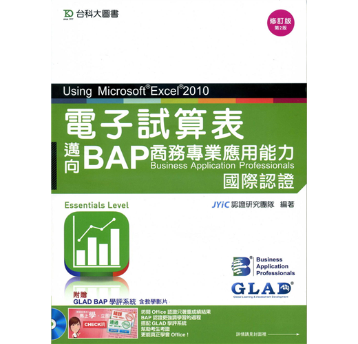 1.本書分為「Excel 2010 電子試算表實用技能篇」與「BAP國際認證測驗試題與解析篇」,不僅能紮實學會Excel 2010,讓您能學以致用,亦能輕鬆考取BAP國際認證,有效提昇競爭力!