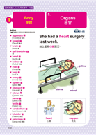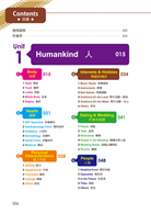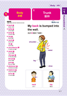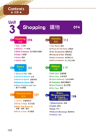 Unit 1 Humankinds 人 Body身體 1 Head 頭部 2 Trunk 軀幹 3 Limbs 四肢 4 Whole body 全身 5 Organs 器官 Health健康 1 ENT Specialist 耳鼻喉科 2 Ophthalmology Clinic 眼科診所 3 Pediatrics 小兒科 4 Dermatology 皮膚科 5 Dental Clinic 牙醫診所 6 Medicine 藥品 Personal Characteristics個人特質 1 Abilities 能力 2 Appearances 外表 3 Characters 個性 4 Feelings 情緒 5 Others 其他 Interests & Hobbies興趣&嗜好 1 Music Styles 音樂類型 2 Instruments 樂器 3 Ball Games 球類運動 4 Outdoors—On the Land 野外活動—陸地 5 Outdoors—On the Water 野外活動—水上 6 Others 其他 Dating & Wedding約會&婚禮 1 Places 地點 2 Taste 品味 3 Nicknames 暱稱 4 People in the Wedding 婚禮出席人員 5 Wedding Needs 結婚必備 6 Divorce 離婚 People人物 1 Neighborhood 鄰近地區 2 Opposites 相反詞 3 In the Palace 在皇宮 4 Titles 頭銜 5 Others 其他 Unit 2 Food 食物 Make a Reservation 預約 1 Restaurant Reservation 餐廳訂位 2 Take an Order I 點餐一 3 Take an Order II 點餐二 4 In the Restaurant 在餐廳裡 5 At the Counter 在櫃台 6 After the Meal 用餐後 Night Market 夜市小吃 1 Kinds of Soup 湯類 2 Kinds of Noodles 麵類 3 Kinds of Rice 飯類 4 Kinds of Ice & Juice 冰果類 5 Kinds of Snacks 點心類 6 Others 其他 Talk About Food 談論食物 1 At the Meat Area 肉品區 2 At the Poultry Area 家禽肉品區 3 At the Seafood Area 海鮮區 4 At the Vegetables 蔬菜區 5 At the Fruit Area 水果區 6 Others 其他 Tableware 餐具 1 Dishware 餐盤類 2 Cutlery 刀、叉、湯匙類 3 Drink ware 杯子類 4 Bowls 碗類 5 Kitchen Accessories 廚房配件 Seasoning 調味料 1 Powder 粉末狀類 2 Liquid 液體狀 3 Dressing 醬料 4 Grains 顆粒狀 5 Herbs 香草類 6 Other Spices 其他香料 Flavor 味道&口味 1 Taste 味道 2 Flavor 口味 3 Like 喜歡 4 Dislike 不喜歡 5 Something Strange 食物有問題 Unit 3 Shopping 購物 Clothing 衣服 1 Tops 上衣類 2 Bottoms 下半身類 3 Skirts & Dresses 裙子類&洋裝類 4 Coats 外套類 5 Prints 圖樣 6 Others 其他 Shoes 鞋子 1 Shoes for Men 男鞋 2 Shoes for Women 女鞋 3 Shoes for Sports 運動用鞋 4 Shoes for Casual 便鞋 5 Some Problems with Feet 腳丫子出問題 Accessories 配件 1 Jewelry 珠寶類飾品 2 Kinds of Bags 各式包款 3 Belts、Ties & Scarves 皮帶、領帶、圍巾 4 Kinds of Hats 各式帽款 Hairdos 髮型 1 Hair Styles 髮型種類 2 Places for Hair Done 理髮店 3 Hair Accessories 髮飾用品 4 Products of Hair 美髮產品 5 Ways of Hairdos 做頭髮方式 6 Men’s Problems 男人頂上問題 Makeup 化妝 1 Skin Care 皮膚保養 2 Skin Clear 皮膚清潔 3 Types of Makeup 化妝品種類 4 Treatments 臉部保養動作 5 Face Problems 臉上問題 6 Skin Type 膚質 Sizes, Measurements & Colors 尺寸、測量和顏色 1 Measurements 測量 2 Colors 顏色 3 Sizes 尺寸 4 Refund & Exchange 退換事宜 5 Fashion 流行 Unit 4 Live 住 Houses & Apartments 房屋&公寓 1 Types of Houses 房屋類型 2 Around the House 關於房子 3 Around the Apartments 關於公寓 4 Places to Live 定居 5 Tools 用具 6 Around the House 房子各處 Hotel VS B&B 飯店 VS 民宿 1 Kinds of Beds & Rooms 各式床款和房間 2 Places in the Hotel 飯店各式地點 3 In the Bedroom 在房間裡 4 In the Bathroom 在浴室裡 5 People in the Hotel 飯店人員 6 Service in the Hotel 飯店服務 Buildings & Cities 建築和城市 1 Buildings 建築物類型 2 Types of Schools 學校類型 3 Streets 街道 4 City 城市 5 Crime and Justice 犯罪和執法 Family Members 家庭成員 1 My family 我的家庭 2 Grandparents& Grandchildren 祖孫輩 3 Relatives 親戚 4 In-laws 姻親關係 5 Others 其他 Living Function 生活機能 1 Tools for House 家用必需品 2 Stores for Food 食品類商店 3 Shops for Body 身體保養類商店 4 Go Shopping 逛街 5 Places for Cure 治療地點 6 Others 其他 Housework 家事 1 Around the Bedroom 關於臥室 2 Around the Living Room 關於客廳 3 Around the Kitchen & Bathroom 關於廚房 & 浴室 4 Around the Yard 關於庭院 5 Cleaning Supplies 清潔用品 6 Household Problems 家居疑難雜症 Unit 5 Travel 行 Book The Tickets 訂票 1 Purchase the Tickets 訂票 2 Check In 機場報到 3 Departure & Immigration 出境和入境 4 In the Air 在飛機上 5 During the Flight 飛行中 Transportation 交通運輸工具 1 Sea Transportation 海運 2 Air Transportation 空運 3 Land Transportation 陸運 4 Members 成員 5 On the Platform 月台上 Countries & Area 國家&區域 1 North & South America 南、北美洲 2 Europe 歐洲 3 Asia 亞洲 4 Africa 非洲 5 Oceans 海洋 6 The Polar Region 極地 Places & Locations 地方和地點 1 Places to Go 可以玩的地點 2 At the Zoo & Botanical Garden 在動物園和植物園裡 3 At the Amusement Park 在遊樂場裡 4 At the Beach 在海灘上 5 Visiting 參觀 6 Others 其他 Language & Nationalities 語言和國籍 1 In North & South America 在南、北美洲 2 In Europe 在歐洲 3 In Asia 在亞洲 4 In Africa 在非洲 5 Languages 6 Others 其他 Landmarks & Asking the Direction 路標和問路 1 Traffic Signs I 交通標誌一 2 Traffic Signs II 交通標誌二 3 Directions 方向 4 Ways to the Destination 到達目的地 5 Prepositions 地方介係詞 6 Others 其他 Unit 6 Work 工作 Occupations 職業 1 About the Technology 技術方面 2 About the Medical 醫護方面 3 About the Business 生意方面 4 About the Art 藝術方面 5 About the Office 辦公室方面 6 Other Occupations 其他職業 Open an Account 銀行開戶 1 Withdrawals & Deposits 提款和存款 2 In the Bank 在銀行裡 3 Kinds of Checks 各式支票 4 Close an Account 結束帳戶 5 About the ATM 關於提款機 Mailing Something 郵寄東西 1 Ways to Send 寄送方式 2 In the Post Office 在郵局裡 3 Addressing an Envelope 寫地址 4 Special Services 特別服務 5 Others 其他 Interviews 面試 1 Information A