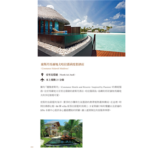 《Constance Moofushi Maldives – Beach Villa》住宿2晚+《Constance Halaveli Maldives – Water Villa》住宿2晚。