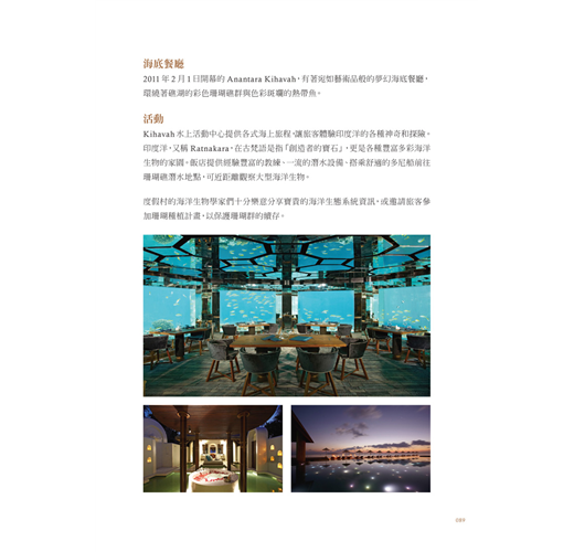 ● 絕無僅有的美食享受:海底餐廳、浪漫沙灘晚餐、水中晚餐、無人島野餐。