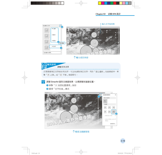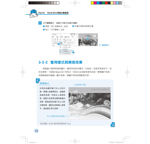 ‧Word 2013專業文書處理篇-市場調查報告、活動DM設計、電子班刊編排、專題報告規劃與製作、專題報告小組協同作業。