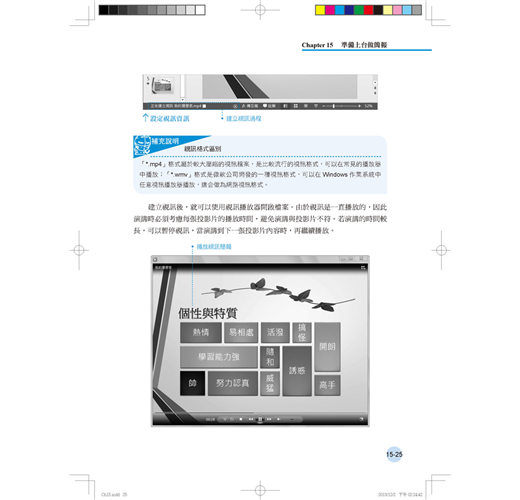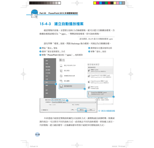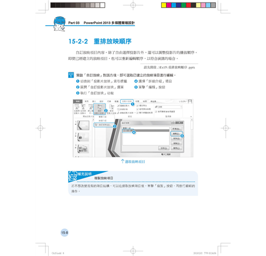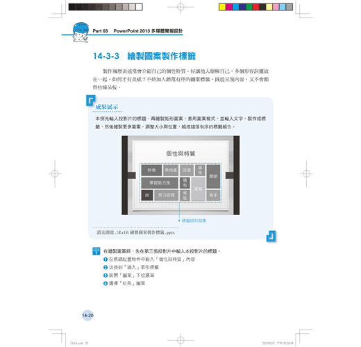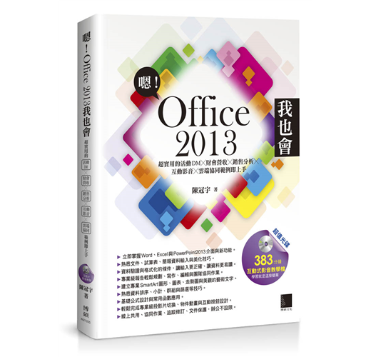 ‧PowerPoint 2013多媒體簡報設計篇-個人履歷簡報設計、準備上台做簡報、產品廣告視訊、基金投資報告、展場互動導覽。