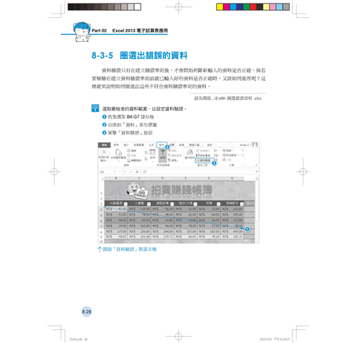 ‧Excel 2013電子試算表應用篇-我的拍賣賺錢帳簿、我的財務支出帳簿、我的人氣商品排行、銷售營收統計、消費行為調查分析。