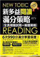 新多益考試6次990分滿分的暢銷書作者薛詠文老師,特別邀請5位新多益考試950分以上考生,利用電腦分析、比對近10年新、舊多益考試出題率最高的單字、文法、片語及閱讀題型及題庫,耗時近2年,終於完成《NEW TOEIC READING新多益閱讀解題策略:模擬試題+解題策略》