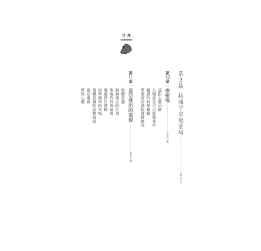 在東方的身心保健哲學觀裡,認為一個人的身體出了問題,包括臟器的疾病甚至是細胞突變的癌症,是因為一個人的「氣」不順、阻塞、出問題。所以有許多的人平時會以練氣功來保養身體,如果罹患了疾病,也會加強氣功的療效,轉換好的氣,來尋求自我療癒。 記得前一陣子有位研究磁場的國外學者,專程到台灣來測量台灣幾處的磁場(如:大安森林公園),且提出了「磁場」越強對身體健康愈有益處;還有在台灣也蔚為流行的,並且風靡日本的「風水」,也以各種元素(比如金、木、水、火、土等)的補強、補弱來尋求人與環境之間的平衡與協調,以增進人的健康並祈求財富與平安。 似乎從古至今,各個領域對研究能量的主題,有著高度的興趣,並賦予不同的名稱與效益,想當然爾,科學家更本著想打破一味只是口耳相傳的迷思。提出假設、驗證、科學證據,為能量現象提出合理解釋,如偉大的科學家愛因斯坦最著名的E=mc2方程式,許多的科學家,如本書所提到的普索夫和海甚,更因為此方程式的啟發,提出更多能量可以轉換質量的科學實驗。事實上,物理實體只有一種:能量。質量並不相當於能量,質量就是能量。既然,無論是世界萬物,我們手中掌握的一切東西,不管是多麼致密,多麼沉重,多麼巨大,在最基礎層級,全都歸結為一群電荷,那我們又該如何更進一步了解這一群電荷,是怎麼主宰著我們的生活? 新時代身心靈導師賽斯是非存在於二次元的意識,對物理學、種種物質實相有其專精的見解,並提出其看法:「每一思想與情感自發地以單一或複雜的電磁單位存在……每個人都無意識地扮演『變壓器』的角色,自動地把非常精密的電磁單位轉化成物質……意識單位帶著電磁電荷組成電磁單位,電磁單位再組成原子,原子再組成分子,分子再組成物質……」也就是我們的思想、情感都是帶著電荷的,這樣的電荷更以其獨特的性質形成強大的引力場,驅動宇宙的無限能量,創造人生的種種事件。 在數年的新時代觀點的洗禮與身心靈實務輔導的經驗裡,我們認為「思想是有力量的」,並藉此來協助癌症個案的療癒,癌細胞可以說是一個人在潛意識裡啟發動了求死的欲望,於是癌細胞就像一股強大的、狂野的能量,除了自身細胞無法正常新陳代謝外,還會侵略其他正常的細胞以帶來毀滅性的效果,所以要回過頭來問這個人的生命出了什麼事?以至於求死的欲望更勝求生的欲望?治療的重點並非只是一味把癌細胞拿掉、操縱物質,而是要更深入這個人的生命內涵,要去轉化的是,是什麼樣的思考模式、情感態度讓一個人想求死?一旦這個人的困頓思想與困境得到了澄清、解決、轉化,而由之升起的是求生的欲望。此刻自身磁場的改變,氣也順了,身體自然會好轉與療癒。即「以心轉境」、「你,就是世界」等概念,與本書中所列的幾位優秀研究者雅恩等人想證明,在某些層級上心靈是能夠支配物質是不謀而合的。 筆者對本書的結尾深有感觸,科學不只是生冷的數據,而是即將進入一場科學的革命——科學要證明確實有高等意識的存在,人類不只是沒有靈魂的軀殼,我們與所有的生靈全都是息息相關的,我們彼此交流著、共振著存在於宇宙(無論是物質宇宙亦或心靈宇宙)的「電荷」不是嗎?科學不再只是冷感、理性的質疑,更試著帶領我們恢復樂觀的意識,告訴我們始終不是孤單的,始終都是大我整體的一部分,自古以來,我們始終都身處於萬物核心。 邀您一同翱遊這本由理性、感性、超感官能力交織的劃時代作品。