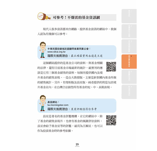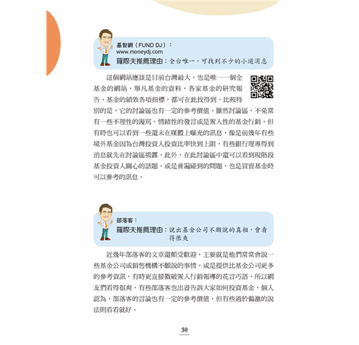 書中重要資訊來源,本書不但列出網址,也轉為QRCODE,方便讀者掌握資料。文筆輕鬆易懂,一個下午,門外漢變投資達人。