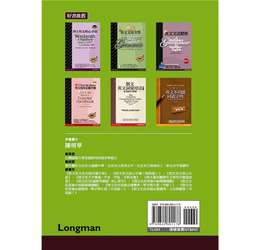 著作:《朗文英文多功能同義字典》、《朗文英文核心字彙(精裝版)》、《朗文英文核心片語》、《朗文英文字彙通—字首‧字尾‧字根全集》、《朗文漢英翻譯作文常用字彙速查典》、《朗文iBT托福應考勝經—核心單字》、《朗文全民英檢中級閱讀測驗》、《朗文全民英檢中高級閱讀測驗》、《朗文全民英檢必備寶典—單字與片語(中級)》、《朗文全民英檢必備寶典—單字與片語(中高級)》、《朗文全民英檢必備寶典—文法與練習(中高級)》