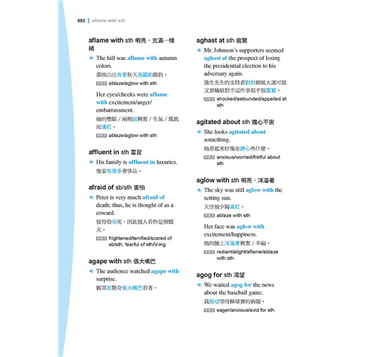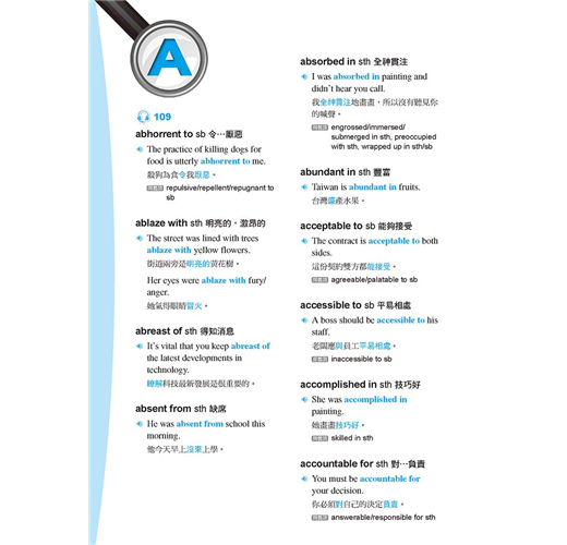 同步延伸:本書也收集片語的同義和反義片語或詞彙。讀者可以一次擴充英文的詞彙量,加速學習效率。