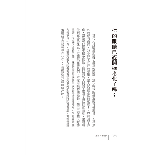 若每天必須使用電腦、手機和平板超過2小時,應依照本書養成良好用眼習慣,避免眼睛繼續受損惡化。
