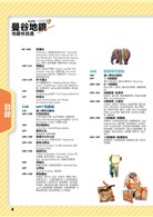 接著,再將捷運和地鐵依路線順序分區安排,每條線挑出重要車站,再以拉線的方式搭配地圖,介紹周邊必訪去處,如此貼心的版面圖文設計,讓你即使出門前不做功課,也能立即找出正確方向,前往想去的地方。此外,有些重要景點目前還無法利用捷運或地鐵抵達,而是要倚賴水路,本書同場加映昭披耶河遊船,提供讀者到這些地方的最佳選擇。