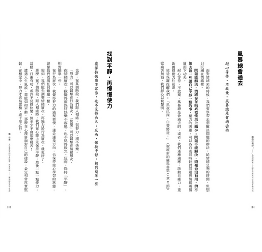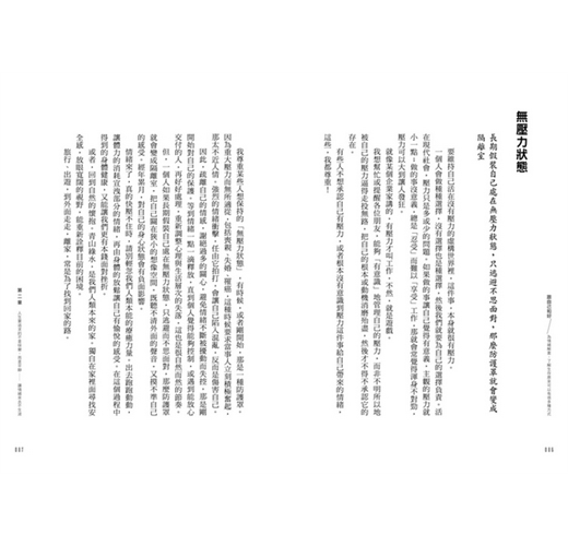 所以當我有機會先賭為快洪仲清臨床心理師的新書時,欣賞之情便自然而生。洪心理師豐厚的心理學基底與豐沛的專業助人經驗,將人之所以產生受苦情緒、難以調適情緒,以及生活中的困境,做了充分的說明,並給予實際的因應方針。非常具系統的從個人生命的建造(自我的穩定)開始談起,特別著重在認識自己,與自己的生命接觸。