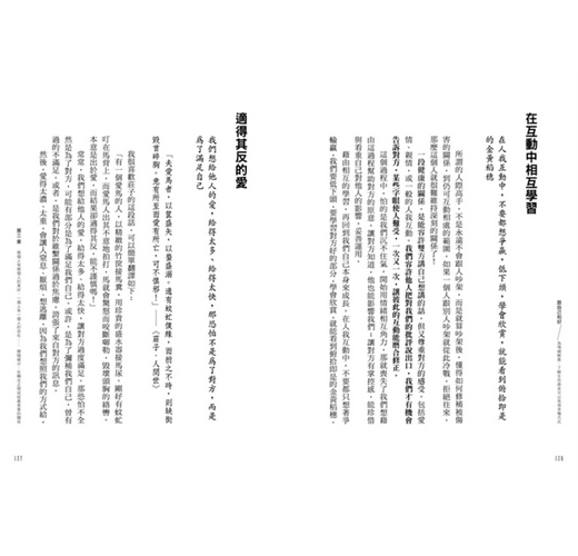 如果你用心感受,也用理智理解,那麼相信你在閱讀時,會漸漸的從認識自己出發,並且無形中,讓你的理性與感性獲得一把珍貴的鑰匙,終於把兩者的隔離之門打開,讓你的理性與感性都成為你的一部份,讓你真實的成為自己,與自己的各個部分連結,和好。