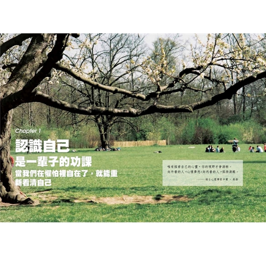 當我們真正開始與自己對話、認識自己、接受自己、跟自己和好,我們才會發現,原來,只要把自己完滿了,生命的一切美好,不待追求。回過頭來,你將發現,和諧的人我互動、豐潤生命的關係,或者是內心的平靜自在,早已掌握在自己手中。