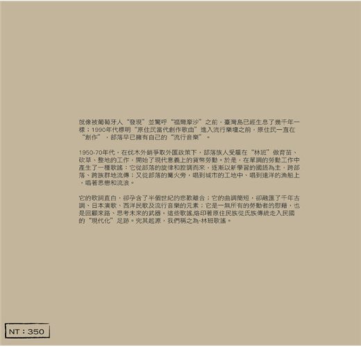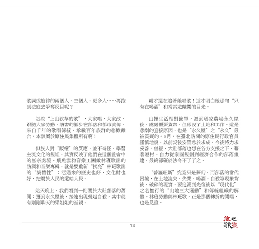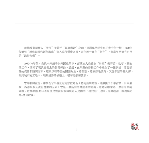 就像被葡萄牙人“發現”並驚呼“福爾摩沙”之前,臺灣島已經生息了幾千年一樣;1990年代標明“原住民當代創作歌曲”進入流行樂壇之前,原住民一直在“創作”,部落早已擁有自己的“流行音樂”。