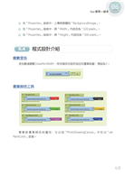本書每章皆有操作練習或範例,供讀者熟悉與練習相關內容,應用範例包含:樂透彩查詢、打擊魔鬼遊戲、數學面積計算、計時器、神奇塗鴉畫筆、猜牌、益智拼圖、音樂播放器、備忘記事佈告版、接蘋果遊戲等,每個範例亦以step by step引導讀者完成專案。