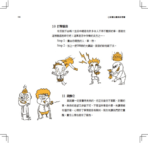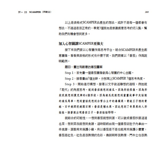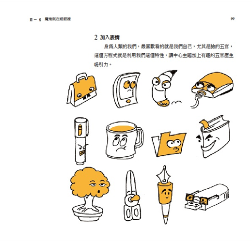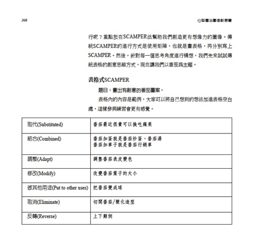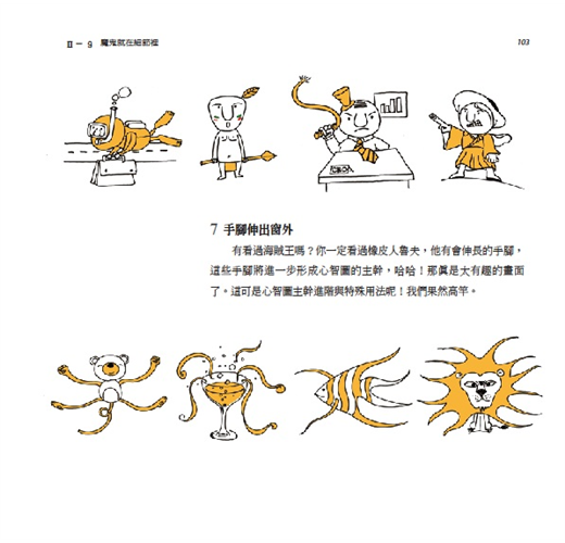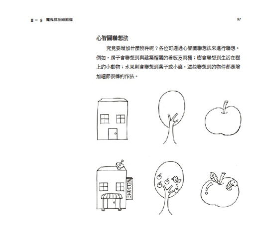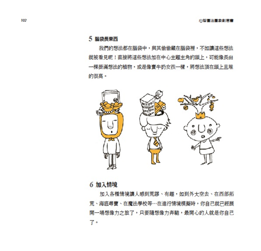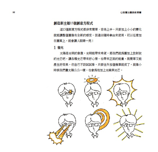 《心智圖法圖像創意書》更提供一個很好的學習途徑,教我們如何畫出吸睛創意的圖像。對於心智圖學習新手來說,本書提供一個步驟式的操作架構,激勵並引導新手可以一步一步畫出腦中的圖像;對於已經使用心智圖一段時間的老手們來說,你會在這本書中找到有效的訣竅以及進階的技巧,讓你的圖像越畫越好,連帶的心智圖也會越用越好。
