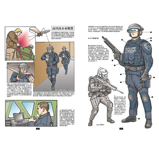 ● 首章彩頁:附上目前搜索恐怖犯罪的技術,並以詳盡的圖解說明高科技武器的設計方針。