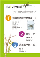 ◎收錄14類30餘種常見昆蟲,包括螳螂、虎甲蟲、螽斯、瓢蟲、蝴蝶、竹節蟲等。分為肉食性及植食昆蟲,一一介紹飼養步驟及注意事項。