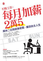 根據這樣的想法所寫的《不必辭職,每月加薪2萬5》這本書,滿載各式各樣創業所需要了解的情報跟專業知識。身為創業顧問、企業經營者的我,並沒有因為任何的妥協而留一手。請各位讀者,跟著我一起去開啟創業的大門吧!