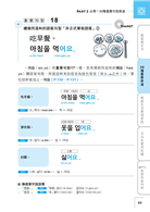 在PART 1中,先認識有關韓語的基本文法,再慢慢提升等級。PART 2開始介紹韓語不可或缺,必須牢記的重要表達方式。PART3則是學習韓國生活中最常使用的會話。尤其PART 3加入了許多日常生活中經常接觸的主題,可以立即應用在實際場合中,請讀者們務必記下來,並且嘗試使用看看,一定會覺得開口說韓語是一件快樂的事情。在PART 4中,針對初級文法比較困難的部分,包括規則活用的結構、不規則活用、現在連體形等,以簡單明瞭的方式解說,幫助讀者了解。除此之外,學習外語的樂趣之一,就是了解該國家的歷史與文化,因此也會從各種觀點,簡單介紹韓國的歷史、地理和信件的寫法,幫助讀者完成一系列的語言學習。