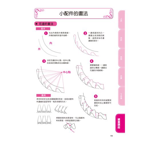 ‧超實用插畫講座: 頭髮、臉型、不同年齡層的表現方法,以及畫好蕾絲花邊的技巧……,各種繪畫訣竅無藏私分享。